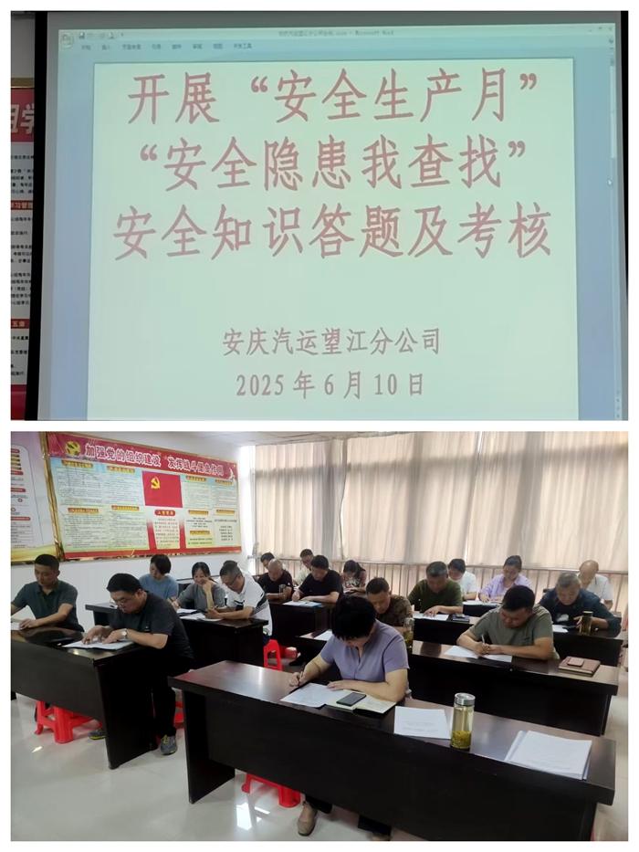 為積極響應(yīng)“人人講安全、個個會應(yīng)急——查找身邊安全隱患”的安全生產(chǎn)月主題號召,進一步加強客運企業(yè)安全管理工作,切實增強全體員工的安全意識與應(yīng)急處置能力,望江分公司于6月10日上午精心組織了一場全員參與的安全知識答題活動,旨在讓安全知識真正扎根于每位員工心中,并切實轉(zhuǎn)化為日常工作的實際行動。