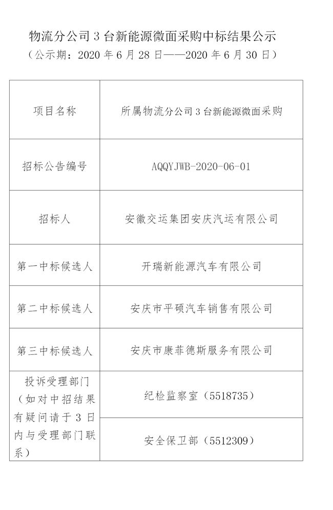 物流分公司3臺(tái)新能源微面采購(gòu)中標(biāo)結(jié)果公示