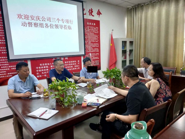 督查組到懷寧分公司后,召開了分公司班子成員參加的工作座談會。分公司黨政負責人及相關(guān)負責人匯報了“三個專項”行動和清單化管理落實情況,督查組聽取匯報后并對相關(guān)對應基礎(chǔ)資料進行了查閱。