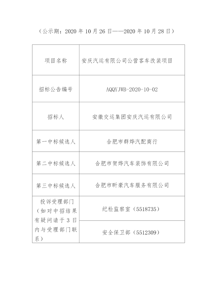 公司公營(yíng)客車改裝項(xiàng)目中標(biāo)結(jié)果公示
