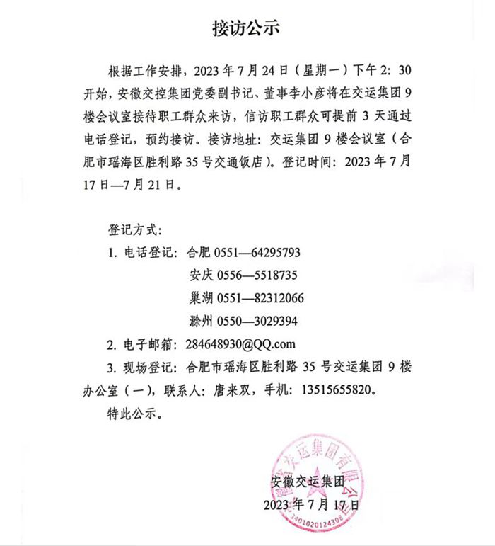 交控領(lǐng)導接訪公告