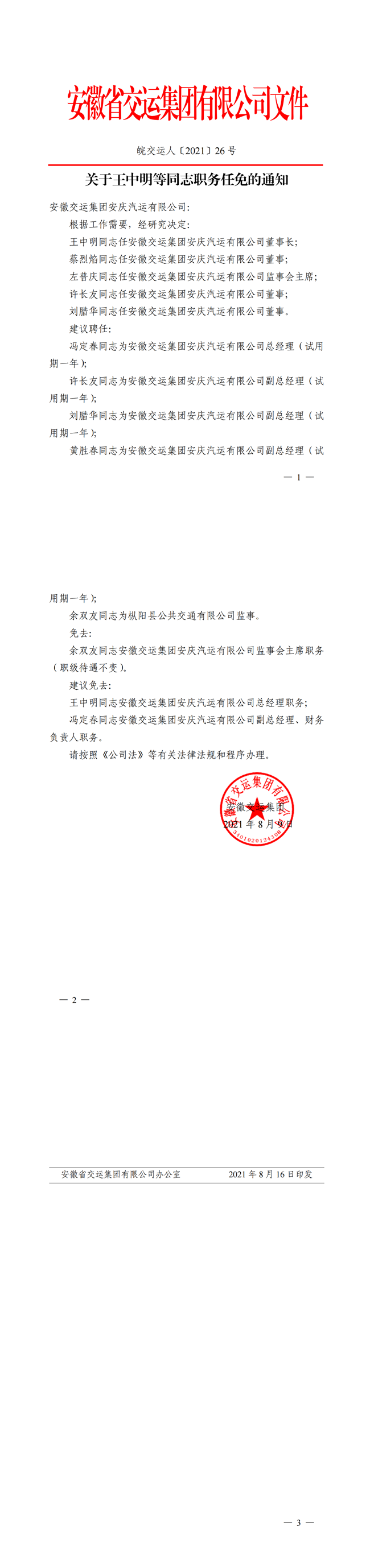 關(guān)于王中明等同志職務(wù)任免的通知
